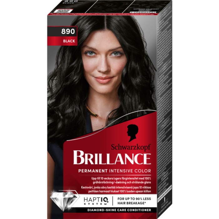Brillance Intensive Color Creme från Schwarzkopf är en serie moderiktiga hårfärger framtagna med en Color Protect-formulering för bra hållbarhet. Nyansen Black ger en intensiv färg som håller i upp till 9 veckor.