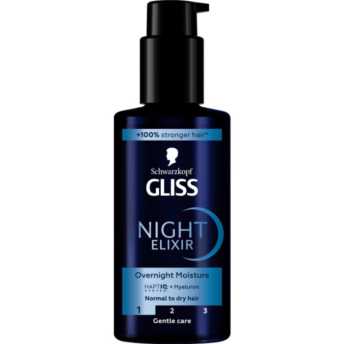 Schwarzkopf Gliss Night Elixir Overnight Moisture for Normal to Dry Hair vårdar normalt eller torrt hår under natten medan du sover.