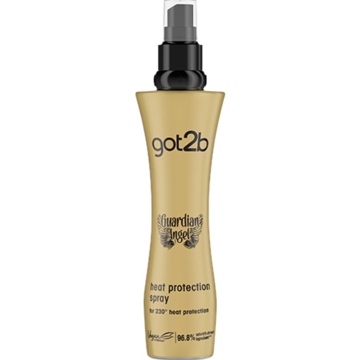 Schwarzkopf got2b Guardian Angel är en värmeskyddande spray för håret. Sprayen skyddar vid hårstyling. Ger upp till 220 ºC värmeskydd och kan användas när du använder plattång, locktång eller fön.