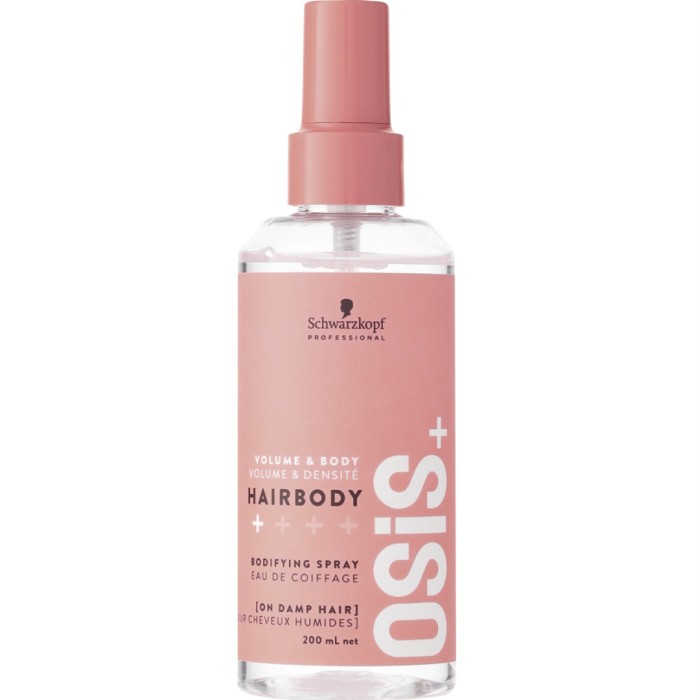 OSiS+ Hairbody är en lätt volymspray som ger skadat hår naturlig volym och lätt stadga. Sprayen skapar luftig volym utan att vara stel och klibbig. Skyddar mot värme upp till 230°C vid användning av varma stylingverktyg. Gör håret lätt att reda ut.