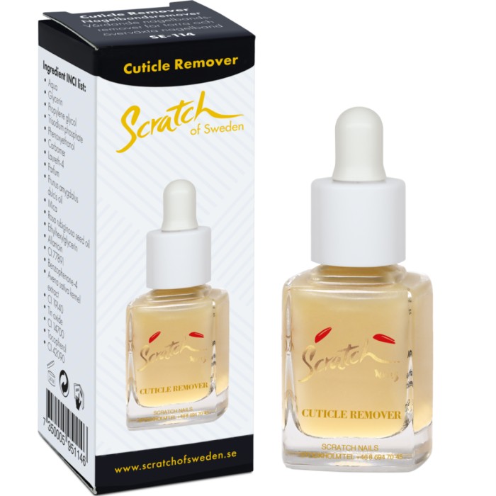Scratch Cuticle Remover är en nagelbandsremover som vårdar nagelbanden. Cuticle Remover tar bort torr hud och överväxta nagelband. Verkar vårdande och mjukgörande för att hjälpa dig att få finare händer och naglar.