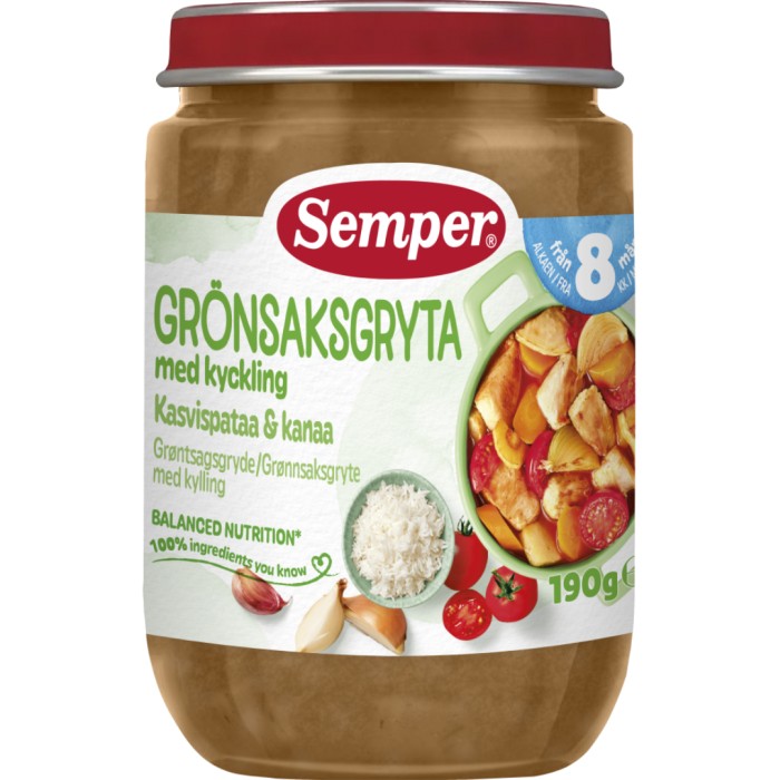 Semper Grönsaksgryta med Kyckling & Vitlök 8M 190 g