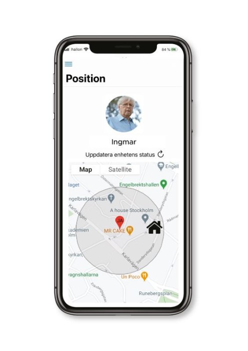 2. Anhöriga får larmnotis med GPS-position i Sensorem-appen