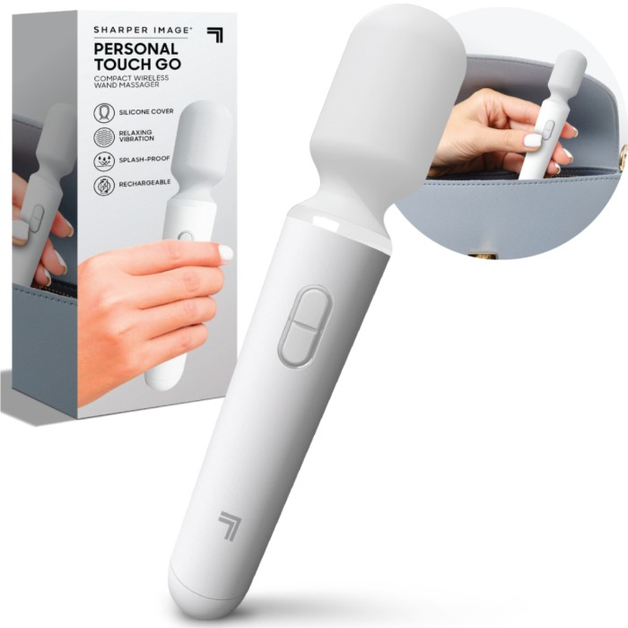 Personal Touch Go massagestav Compact Wireless Wand från Sharper Image är en massage-apparat som ger en djup och koncentrerad massage som löser upp trötta och spända muskler. Genom att trycka massage-apparaten hårdare mot musklerna kan du öka intensiteten och känna massagemunstyckets mjuka och hudvänliga silikon vibrera. Ställ in massageapparaten med tre ultratysta vibrationsinställningar. Kan användas för intensiv massage i upp till 2 timmar på en laddning.
