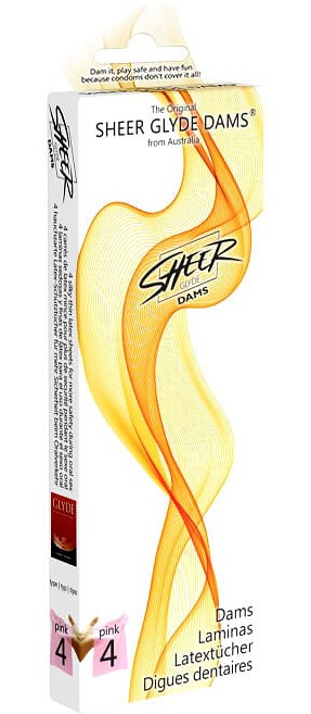 Sheer Glyde Dams är slicklappar som kan användas vid oralsex. De tunna slicklapparna är silkeslena latexark. För engångsbruk.