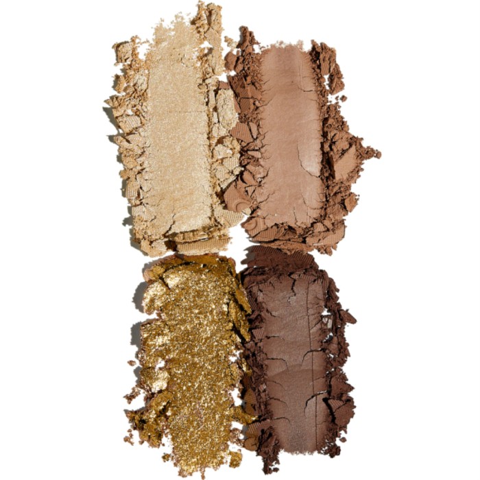Nyanserna heter: Custard (mjuk beigeguld metallic), Nutty (neutral brun matt), Caramelized (rikt guldskimmer), Brittle (varm chokladbrun matt).