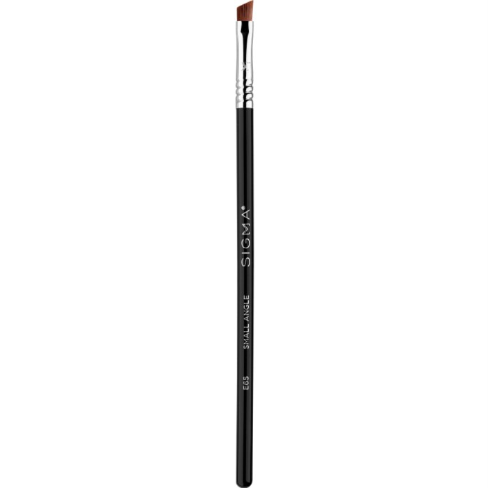 Sigma Beauty E65 Small Angle Brush är en syntetisk sminkborste av hög kvalitet. Small Angle Brush E65 har ett vinklat, tunt borsthuvud med täta fiberhår. Borsten används för att skapa extra fina linjer längs övre eller undre franslinjen. En syntetisk sminkborste av hög kvalitet.