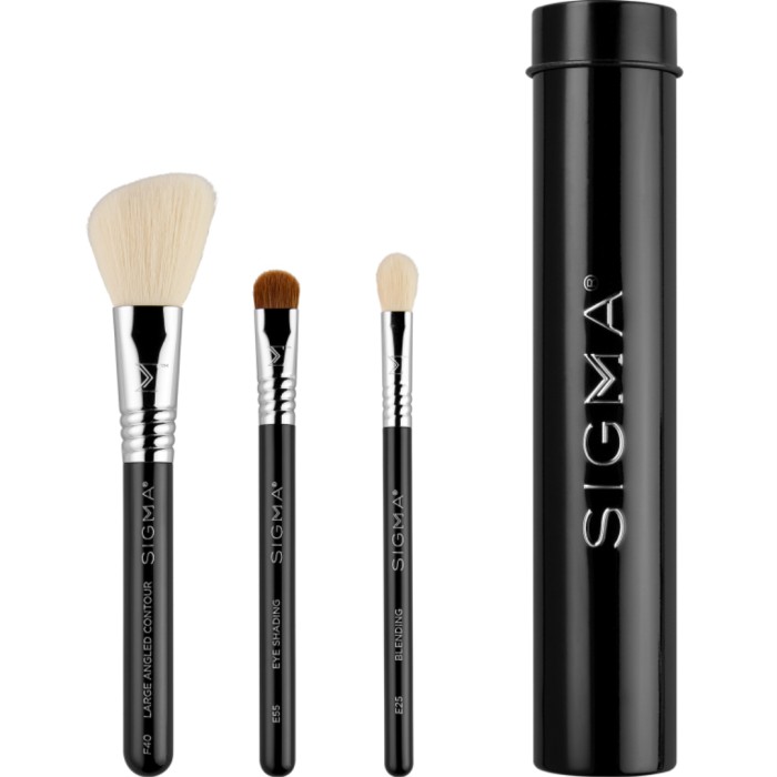 Sigma Beauty Essential Trio Brush Set kan du använda för att snabbt och enkelt fixa till sminket. Det praktiska borstsetet i resestorlek innehåller en vinklad ansiktsborste och två klassiska ögonborstar i en praktisk förpackning. Perfekt för såväl nybörjare som proffs. Borstarna är veganska.