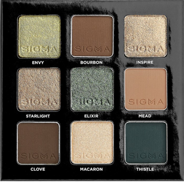 Ivy Eyeshadow Palette från Sigma Beauty är en ögonskuggspalett med en lockande blandning av matta, skimriga, metalliska och duokroma nyanser. Paletten har frodiga gröna och rika neutrala färger och kan användas för bas, globlinje, övergång eller ögonlock. Fungerar bra för att tona upp eller ner olika undertoner.