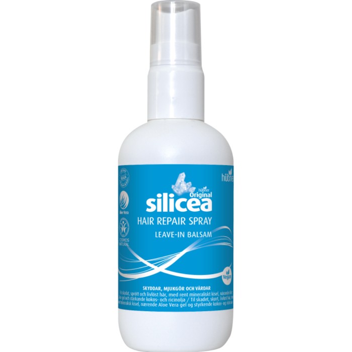 Silicea Hair Repair Spray är en balsamspray som gör håret mjukt och lättare att kamma/borsta. Sprayen innehåller reparerande och vårdande naturliga ingredienser som skyddar skadat, skört och torrt hår. Silicea balsamspray re-genererar och vårdar håret och hjälper håret att återfå sin naturliga glans. Verkar fuktgivande och anti-statiskt.