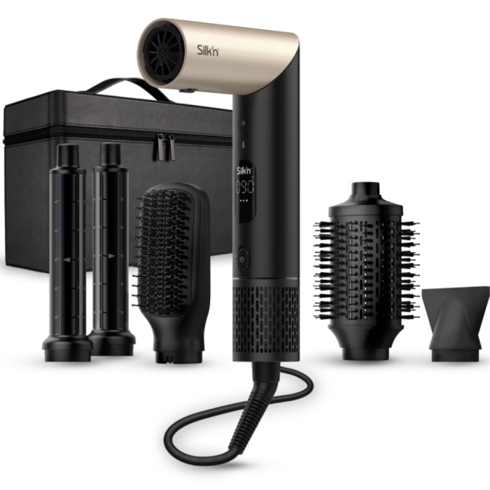Silk'n Silky Air Flex 5 är ett allt-i-ett hårstylingverktyg. Air Flex har en borstlös motor och en flexfunktion som gör att den förvandlas från en kraftfull hårfön till ett allt-i-ett-verktyg för hårstyling. Du kan styla ditt hår med fyra olika temperaturer, torka håret snabbt med det koncentrerade luftflödet, och med 5 olika tillbehör kan du skapa den frisyr du vill ha.