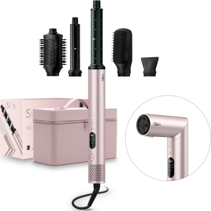 Specialutgåva av Silk’n SilkyAir Flex-5 allt-i-ett hårstylingverktyg. Den borstlösa motorn och flexfunktionen gör att Silk’n SilkyAir Flex-5 kan förvandlas från en kraftfull hårtork till ett allt-i-ett stylingverktyg. Styla håret med 4 olika temperaturer, torka håret snabbt med det koncentrerade luftflödet, och med 5 olika tillbehör kan du skapa nästan vilken frisyr som helst.
