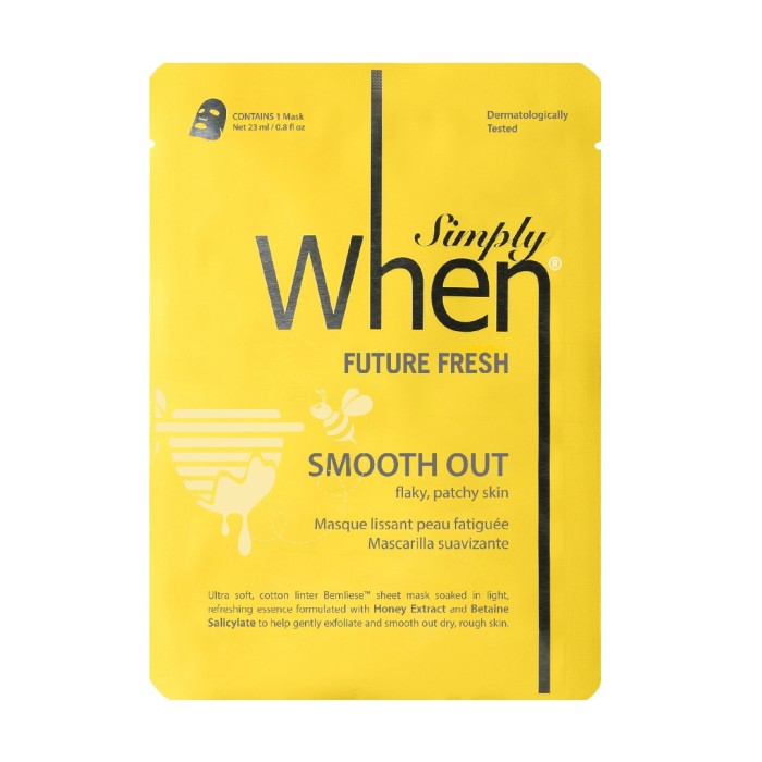Simply When Future Fresh ansiktsmask är ett ark tillverkat av det mjuka bomullsmaterialet bomullslinter (Bemliese™.) Arket är doppat i en lätt och uppfriskande essens med bl a honungsextrakt och Betaine Salicylate, för att hjälpa till att varsamt exfoliera och jämna ut torr, grov hud.