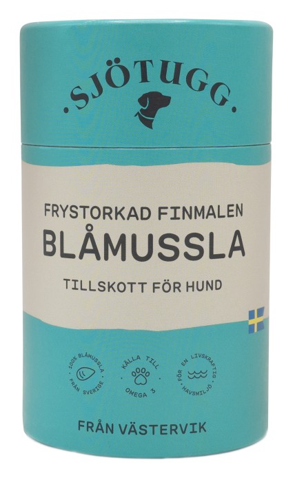 Sjötugg tillskott för hund är välsmakande pulver av blåmusslor, varsamt odlade och skördade i svenska vatten. Musslorna är frystorkade och näringsrika och helt utan tillsatser. Musslorna har högt proteininnehåll och är samtidigt en naturlig källa till marina omega-3 fetter som kan bidra till hundens välmående. Detta tillskott passar alla typer av hundar, även allergiker/foderintoleranta, eftersom mussla ses som ett nytt protein (novel protein) för immunsystemet.
