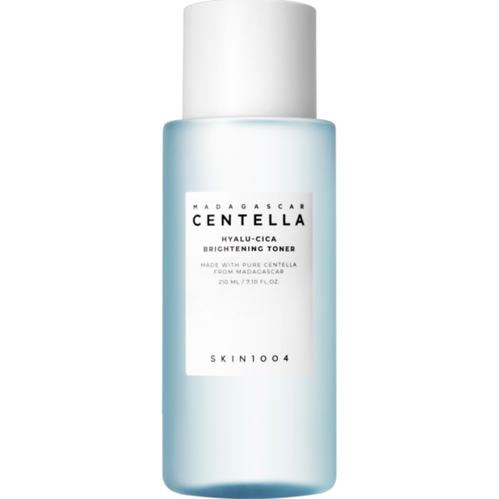 SKIN1004 Madagascar Centella Hyalu-Cica Brightening Toner är en återfuktande toner med mild exfoliering. Ansiktsvattnet innehåller 74 % madagaskiskt Centella asiatica-vatten som lindrar torr och känslig hud.