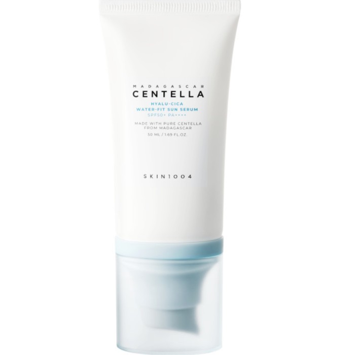 SKIN1004 Madagascar Centella Hyalu-Cica Water-Fit Sun Serum är ett kemikalistk solskydd med ett effektivt UVA/UVB-skydd på SPF 50+ och PA++++. En ultralätt solkräm med en icke-klibbig och serumliknande konsistens. Ger en "dewy" finish någon utan vit hinna.