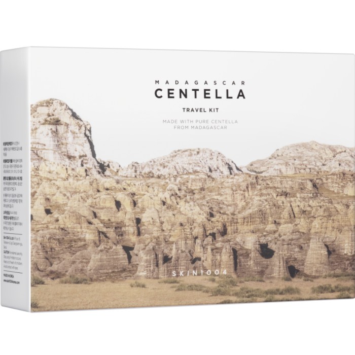 SKIN1004 Madagascar Centella Travel Kit är ett hudvårdset med miniförpackningar i resestorlek. Kitet Innehåller alla fem produkter i Madagascar Centella-serien.