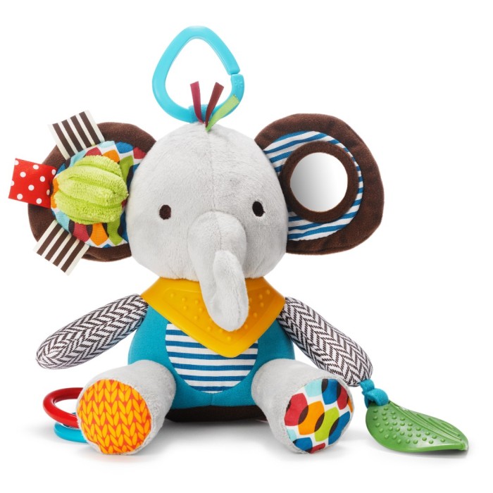 Skip Hop Bandana Buddies Elefant är en mjuk och färgglad leksak med massor av aktiviteter för barnet - en söt liten kompis på barnvagnspromenaden.