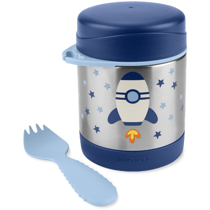 Skip Hop Spark Style är en färgglad mattermos av rostfritt stål som håller barnens mat varm eller kall. En smart spork (spoon + fork) som är både sked och gaffel i ett ingår, och sitter i den inbyggda bestickhållaren.