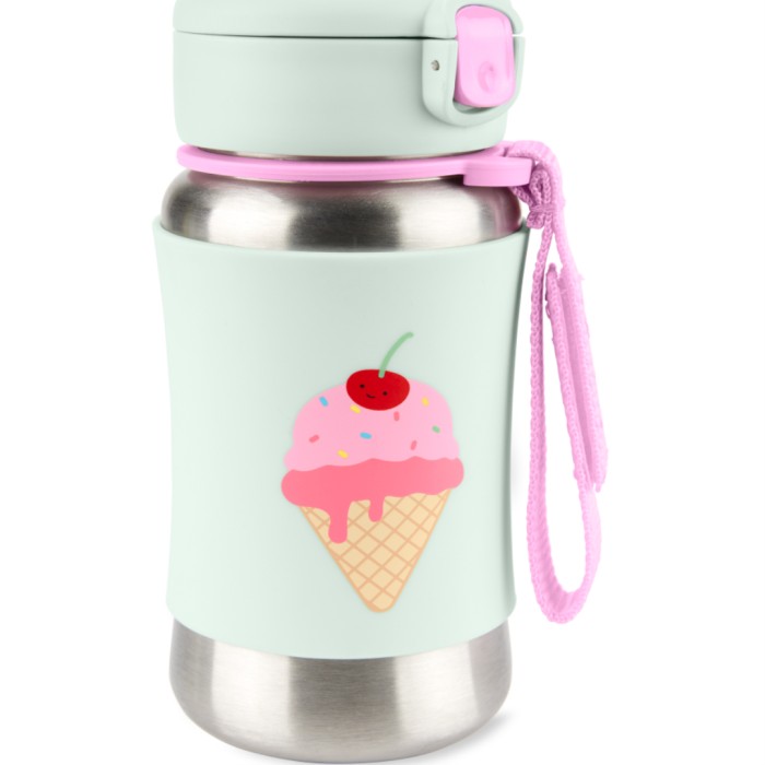 Spark Style Sportflaska från Skip Hop är en flaska i rostfritt stål för barnet. Flaskan är tillverkad av tåligt rostfritt stål och har ett greppvänligt silikonskydd för att inte kännas för kall för barnets händer. Drickflaskan har ett inbyggt sugrör, en praktisk rem att hålla i och ett pop-up-lock för hygienisk användning. För barn från ca 1 år.