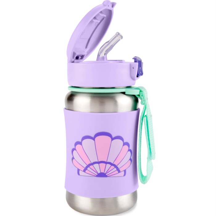 Spark Style sportflaska från Skip Hop är en flaska i rostfritt stål för barnet. Flaskan är tillverkad av tåligt rostfritt stål och har ett greppvänligt silikonskydd för att inte kännas för kall för barnets händer. Drickflaskan har ett inbyggt sugrör, en praktisk rem att hålla i och ett pop-up-lock för hygienisk användning. För barn från ca 1 år.