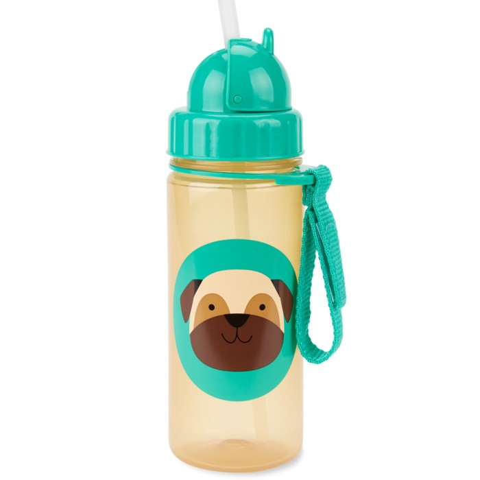 Skip Hop Zoo är en färgglad drickflaska med ett mjukt sugrör. Drickflaskan med sugrör kan göra övergången lättare när barnet ska lära sig att dricka själv. Sugröret viks ned när man stänger locket och på så vis läcker det inte ut något från flaskan. Flaskorna i Zoo-serien har söta motiv med kompisar från Zoo-familjen.