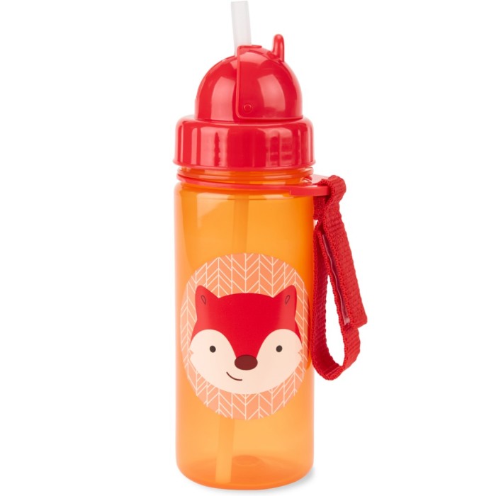 Skip Hop Zoo är en färgglad drickflaska med ett mjukt sugrör. Drickflaskan med sugrör kan göra övergången lättare när barnet ska lära sig att dricka själv. Sugröret viks ned när man stänger locket och på så vis läcker det inte ut något från flaskan. Flaskorna i Zoo-serien har söta motiv med kompisar från Zoo-familjen.