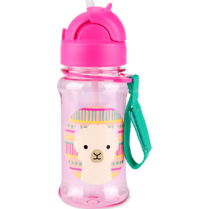Skip Hop Zoo är en färgglad drickflaska med ett mjukt sugrör. Drickflaskan med sugrör kan göra övergången lättare när barnet ska lära sig att dricka själv. När man stänger locket viks sugröret ned för att försluta flaskan och hålla sugröret rent. Bärremmen gör att det är lätt att ta med flaskan. Flaskorna i Zoo-serien har söta motiv med kompisar från Zoo-familjen.