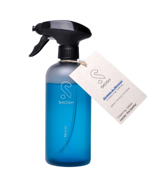 Skosh Glass & Mirror Cleaning Kit innehåller en tablett och en sprayflaska. Skosh rengöringstablett blandas med 500 ml kranvatten i sprayflaskan, och du får en effektiv rengöring för glas- och spegelytor. Anpassad för rengöring av speglar, rostfritt stål och glasytor.