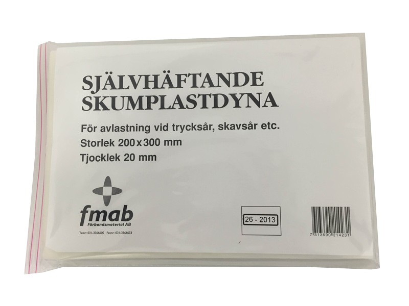 Självhäftande skumplastdyna för avlastning vid trycksår, skavsår etc.