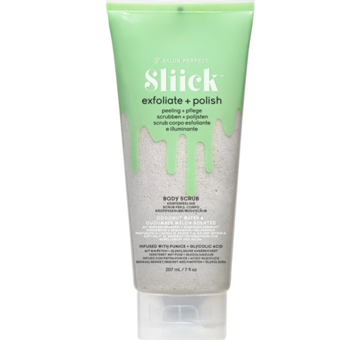 Sliick by Salon Perfect Exfoliate+Polish Body Scrub är en kroppsskrubb med pimpsten och AHA-syra.