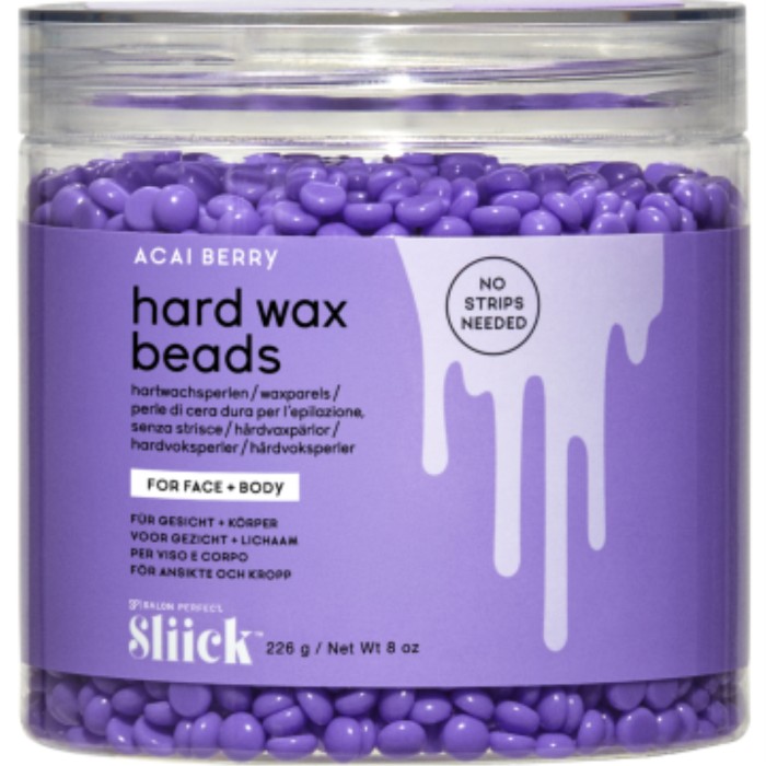 Sliick by Salon Perfect Hard Wax Beads Acai är aciabärsdoftande vaxpärlor för vaxning av ansikte och kropp. Används med den behållare för mikrovågsugn från kitet at Home Microwave Waxing Kit som du redan har hemma.