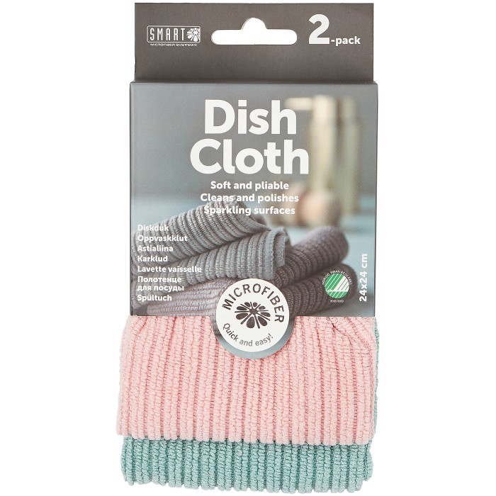 Smart Microfiber Diskduk är en diskduk i mjuk, högabsorberande mikrofiber som effektivt tar bort smuts och fläckar. Diskduken har en lite ribbad struktur och kan användas för polering och rengöring av bänkskivor, spisar, diskbänkar, kranar och bord. Gör rent utan att lämna fläckar eller ränder, och duken torkar snabbt efter användning. Fukta trasan lätt med vatten innan användning.