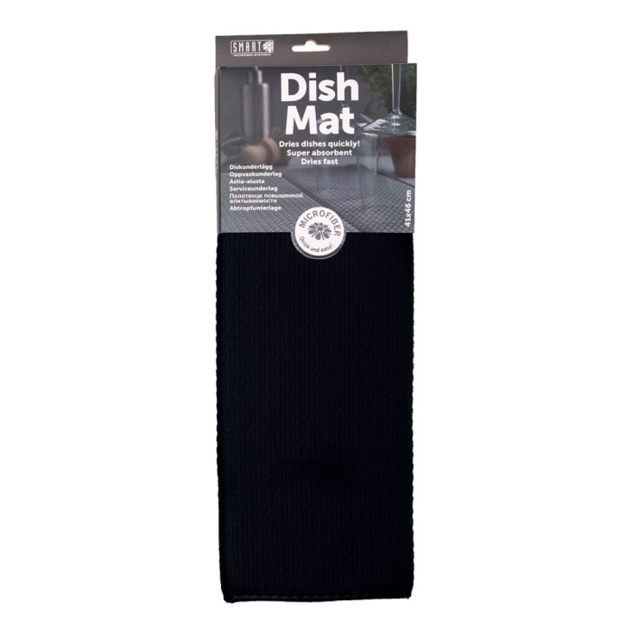 Smart Microfiber Diskunderlägg är tillverkat i högabsorberande mikrofiber och är perfekt när du ska torka grytor, kastruller och porslin. Underlägget passar särskilt bra till ömtåligare disk som du inte vill ställa i diskmaskinen, som finporslin eller kristallglas. Både mattan och disken torkar snabbt, utan att lämna imma på ytor.