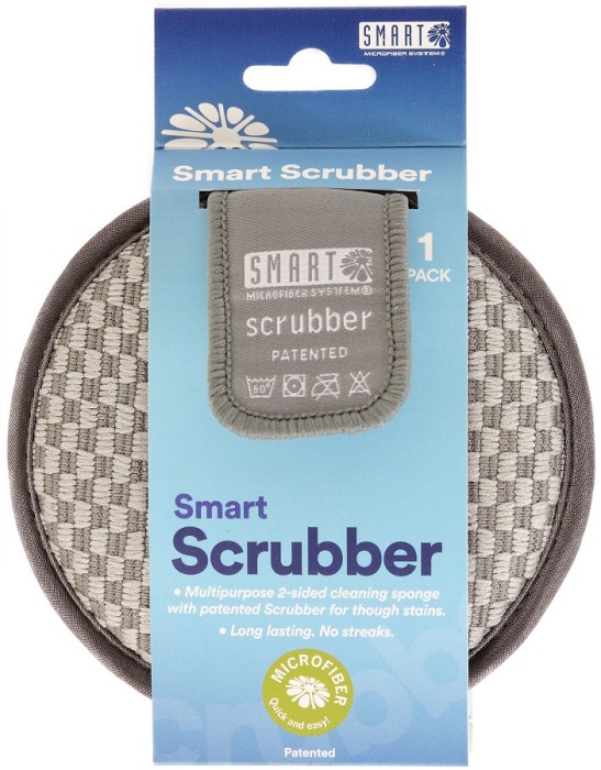 Smart Scrubber är en dubbelsidig rengöringssvamp med patenterad skrubbetikett som har flera användningsområden. Skrubbetiketten tar bort tuffa fläckar. Tillverkad av mjuk och absorberande mikrofiber. Lämnar inga ränder. Har lång livslängd - upp till 200 tvättar. (Kan tvättas i maskin 60 grader.)