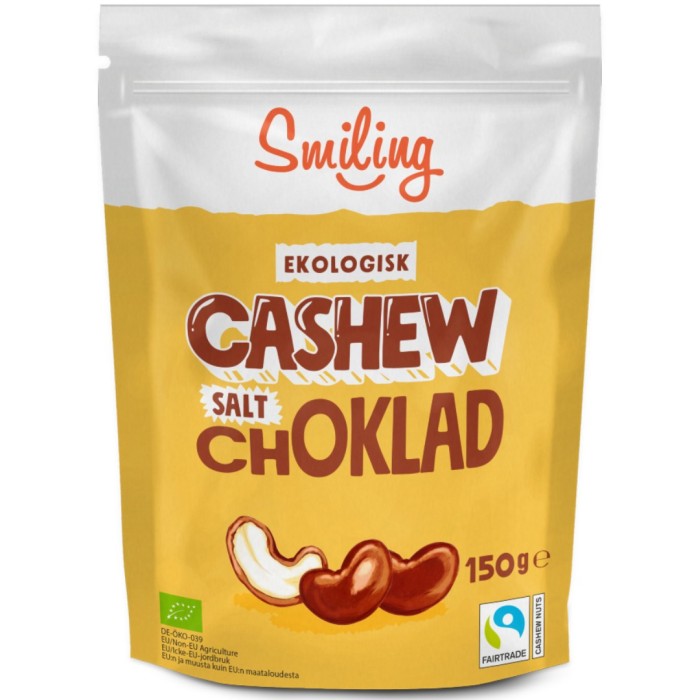 Smiling saltade cashewnötter täckta med ljus choklad. En god mix av salt och choklad.