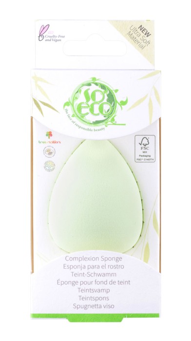 So Eco Complexion Sponge kan användas för applicering av olika typer av foundation, rouge och puder. Sminksvampen har rundade sidor för att göra den lättare att "dabba" på stora ytor i ansiktet. Den spetsiga änden använder du för att täcka blemmor och ojämnheter.