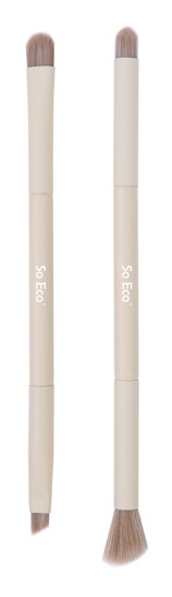 So Eco Eye Duo Set med två dubbeländade ögonborstar som du kan använda för att blanda flytande, puder och krämprodukter till ögonen.