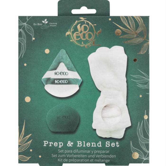So Eco Prep & Blend Set är produkter som kanske kan hjälpa dig att lyfta din sminkrutin. Kitet innehåller ett bekvämt hårband som håller håret borta från ansiktet under hudvård och när du lägger din makeup, medan den mjuka puderpuffen ger en matt look och kan användas till både löst och kompakt puder. Använd den droppformade svampen för att sömlöst blanda ut flytande eller krämiga produkter för ett fint resultat.