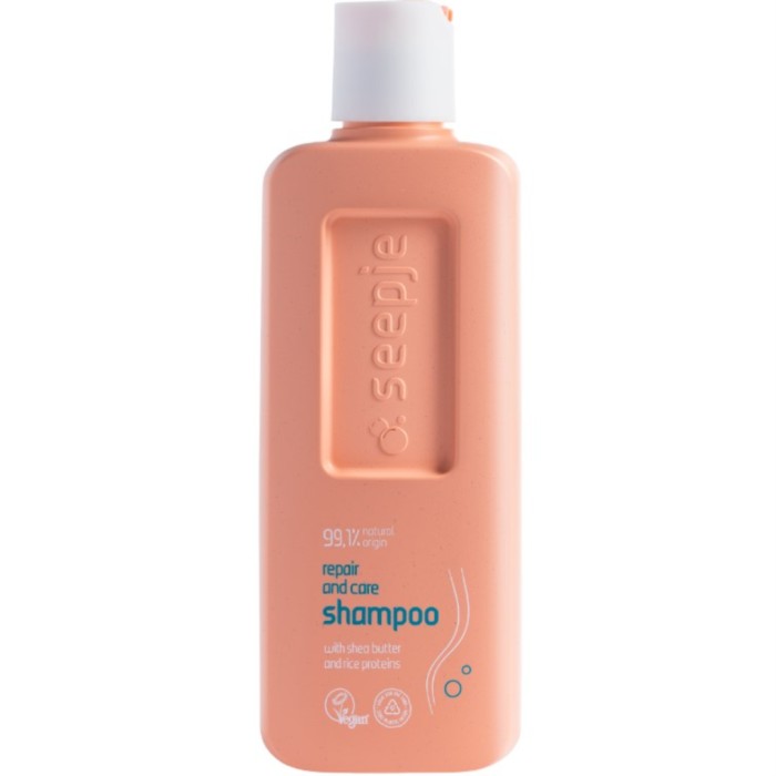 Soaply Shampoo Repair & Care är ett hårschampo gjort på 99 % naturliga ingredienser, och berikat med ekologiskt sheasmör från Ghana samt växtbaserade ris- och havreproteiner. Schampot har en näringsrik formulering som lugnar en känslig hårbotten, vårdar livlöst hår och ger håret glans. Ett schampo framtaget för att återuppliva torrt eller slitet hår. Passar även färgbehandlat hår och känslig hårbotten. Flaskan är tillverkad av 97% återvunnen plast