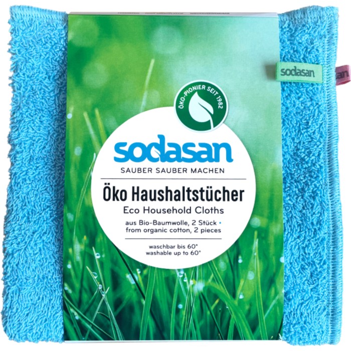 Sodasan Household Cloths är ett 2-pack disk- och städtrasor gjorda av ekologisk bomull. Dessa absorberande hushållstrasor kan användas för alla ytor i hemmet. Disk- och städtrasan är naturligt slitstark och frottétyget är gjort av 100 % Fairtrademärkt ekologisk bomull. Mått 30 x 30 cm. Tvättbar i 60°C.