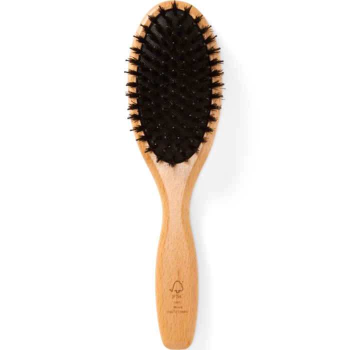 Soft Spell Cushion Brush är en kuddborste med handtag i trä (från hållbart certifierat skogsbruk) och en mix av nylonpiggar och naturborst. Borsten tar varsamt hand om håret och minskar slitage.