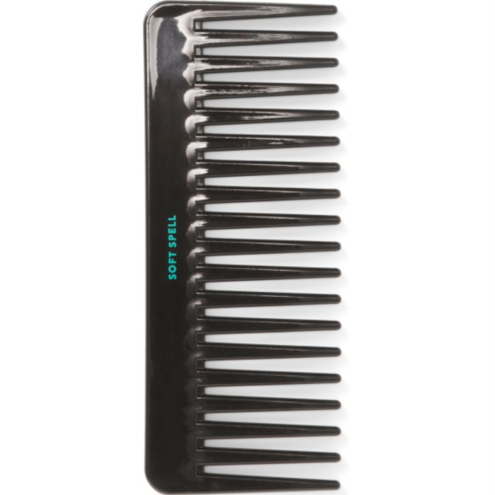 Den bredtandade kammen från Soft Spell passar bra för utredning av både torrt och fuktigt hår.