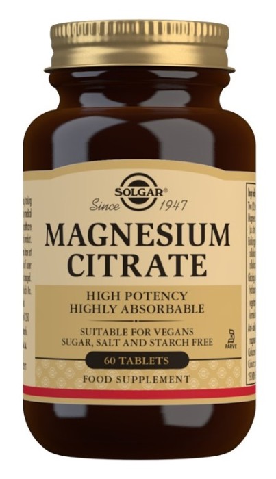 Solgar Magnesium Citrate är ett kosttillskott som innehåller 200 mg magnesium per tablett. Kan användas av den som är vegan och kosher.