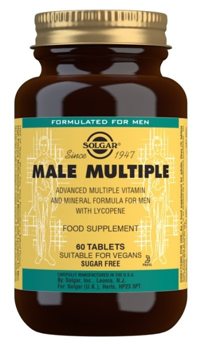 Solgar Male Multiple är en multivitamin för män i alla åldrar. Solgar Male Multiple innehåller magnesium och kalcium samt spårämnen och mineraler som selen och zink.