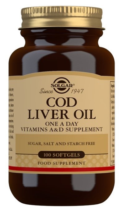 Solgar Torskleverolja (Cod Liver Oil) är ett kosttillskott med torskleverolja, rikt på A- & D-vitamin.