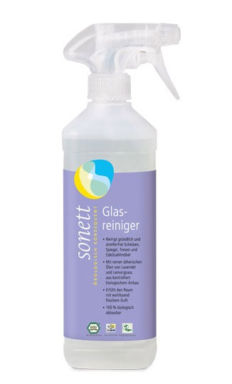 Sonett Glasputs rengör små glasytor som speglar och mindre fönster utan att lämna streck eller ränder. Kan även användas för att rengöra rostfritt stål och plastytor och tar bort fingeravtryck från metallytor.