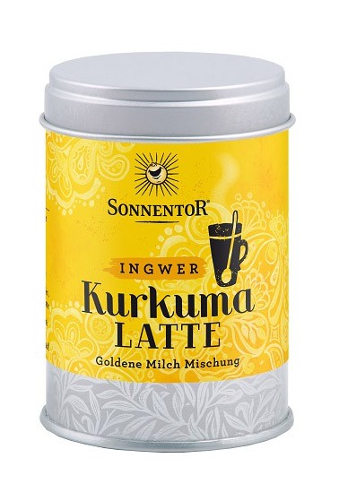 Sonnentor Kurkuma Latte är ett pulver som du blandar med mjölk (växtbaserad eller vanlig) till en gul gurkmejalatte.