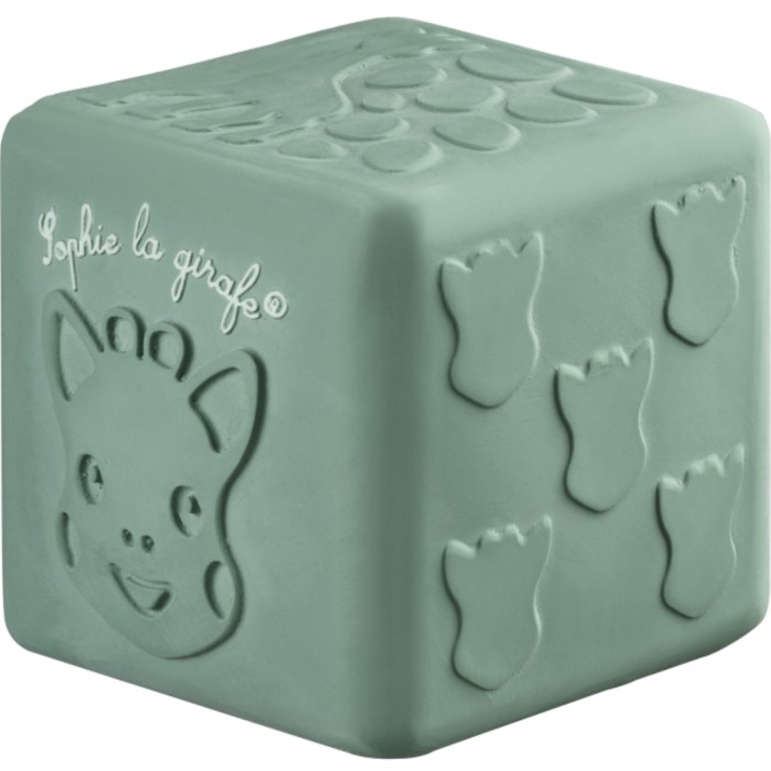 Sophie la Girafe Aktivitetskub är en mjuk kub i 100% naturgummi. Aktivitetskuben kan användas för att stimulera bebisens känsel med olika texturer. Kuben är lätt och rolig att leka med. Den har upphöjda och urholkade spår, rundade detaljer och söta ansiktsdetaljer från Sophie la Girafe.