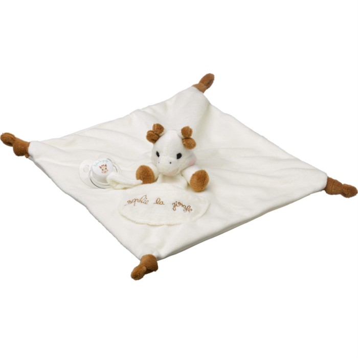 Sophie la Girafe Comforter är en goseduk med napphållare. Den mysiga goseduken har mjuka färger och ger mjukhet och tröst till barnet när det är dags att vila och sova. Goseduken har en Velcro®-fästare för att hålla koll på barnets napp. Det är enkelt att greppa i giraffens huvud och ben och knutarna, en i varje hörn. Mått: 23 x 10 x 26.
